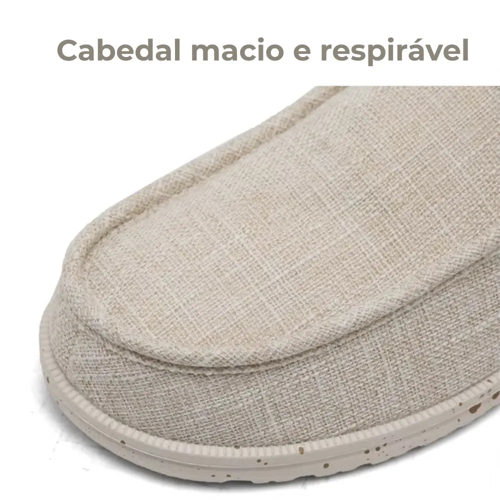 Resposta: Sim. A combinação de lona leve e sola de borracha proporciona conforto em passos longos, com ventilação que evita aquecimento.